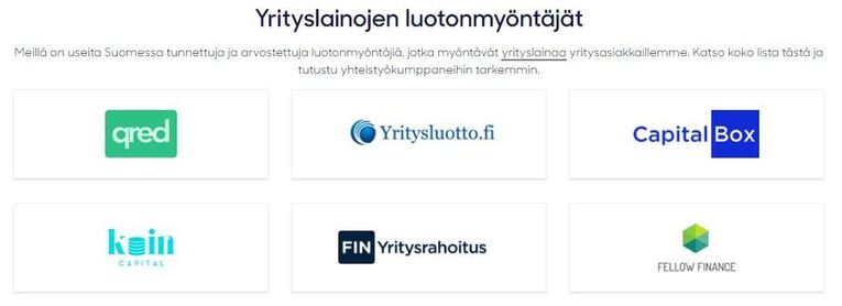 Zmartan yrityslainakumppaneita ovat tällä hetkellä Qred, Yritysluotto.fi, CapitalBox, FIN Yritysrahoitus ja Koin Capital.